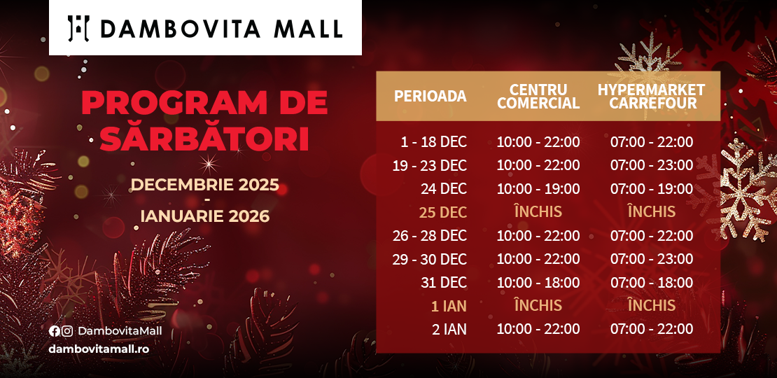 Perioada: 27.12.25-25.01.26 Vezi detalii →Bd. Regele Ferdinand nr. 6, Targoviște