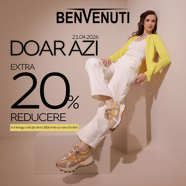 Ai EXTRA -20% reducere la întreaga colecție de încălțăminte și marochinărie, inclusiv la produsele deja reduse.